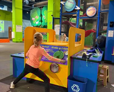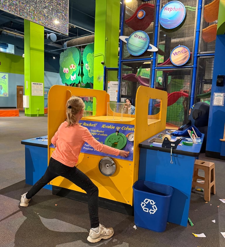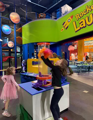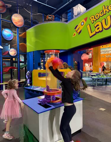 Afterward, we walked to Centennial Olympic Park for a picnic lunch, then explored the Atlanta Children’s Museum. I originally wasn't sure if it would engage CE, but she ended up spending nearly an hour testing her paper rocket’s aerodynamics, while the younger two were enthralled by the giant ball machine and simple machines exhibit. It was significantly smaller than Chicago or Indianapolis’s museums—but full of curiosity, creativity, and hands-on exploration.